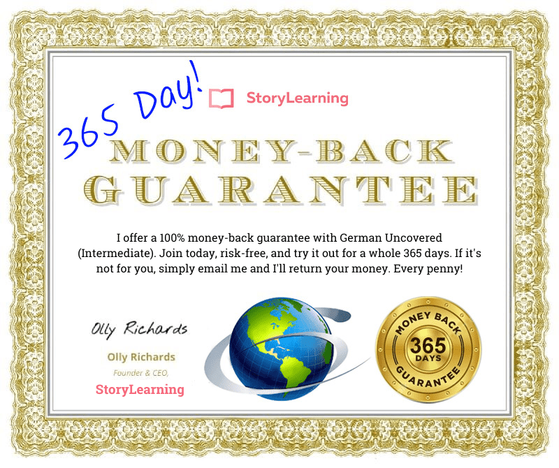 If you honestly try German Uncovered (Intermediate) and it doesn’t work for you, you can have your money back AND I will also pay for you to try any other German Course.